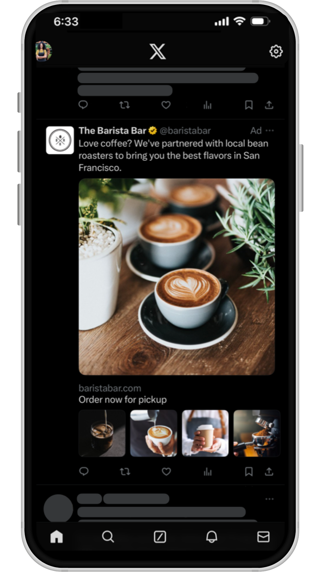 Collection Ads on X provide an interactive, visually rich way for users to explore your products or services directly from the timeline. This format features a main hero image or video at the top, followed by multiple smaller thumbnails underneath — allowing users to browse several offerings instantly without swiping.